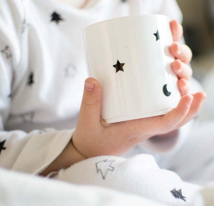 月と星の柄がちりばめられた可愛いコップです。