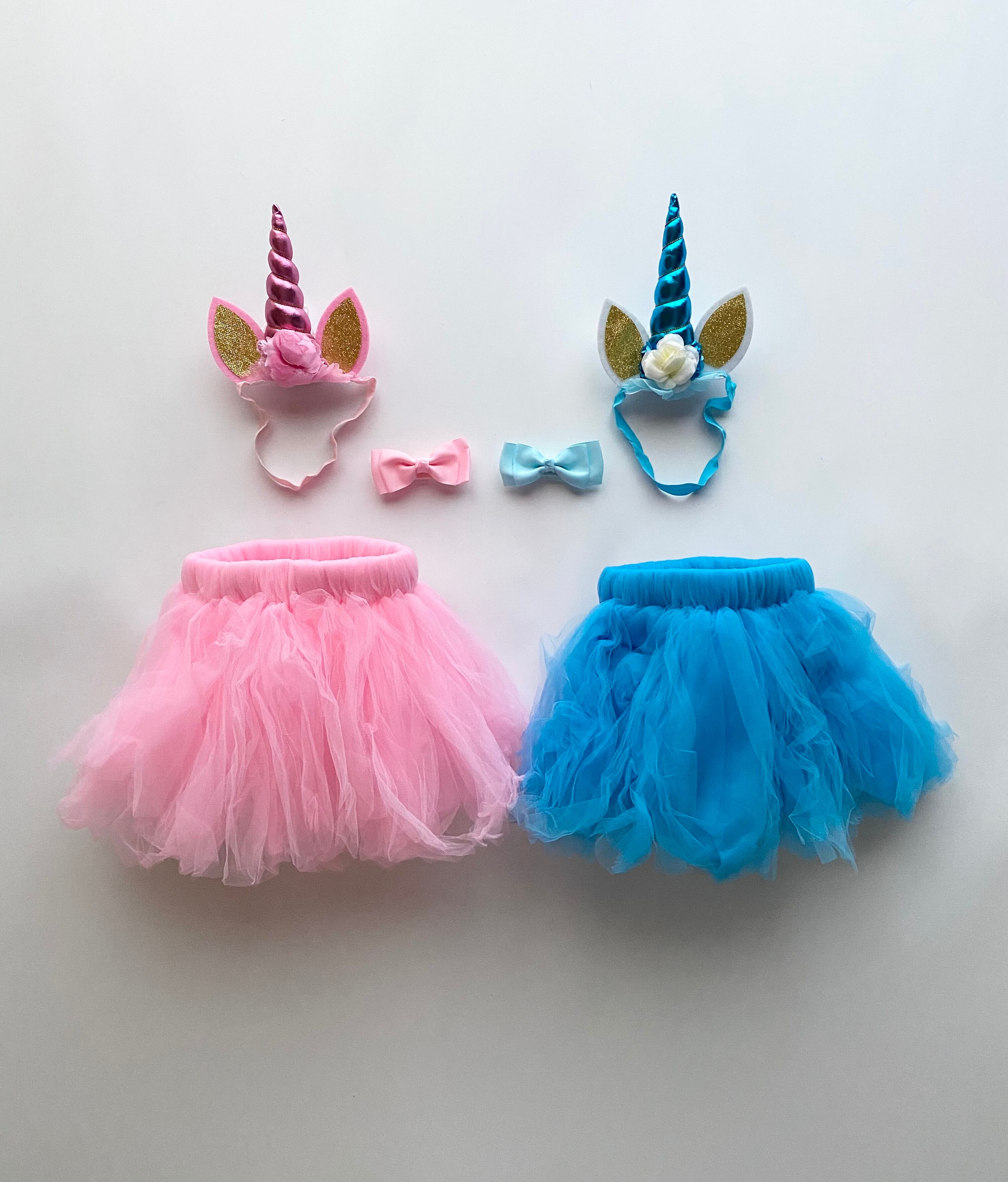 ヘアバンドはパープルがホワイト、グレーがピンク、他カラーはスカートと同色の物がセットになります。
